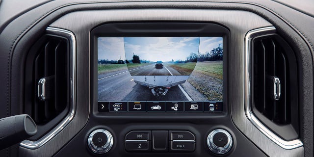 The 2500 and 3500 trucks will be available with a 360-degree camera system that can virtually “see” through a trailer. It works with a wired accessory camera that’s mounted to the back of the trailer and sends a feed to the display on the dashboard where it's stitched together with another view from the tailgate to create what appears to be a transparent outline on the screen.