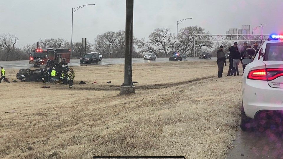 A vehicle crashed near the south Interstate 135 and Interstate 235 interchange at around 11:28 Sunday morning, and one person was pronounced dead at the scene.