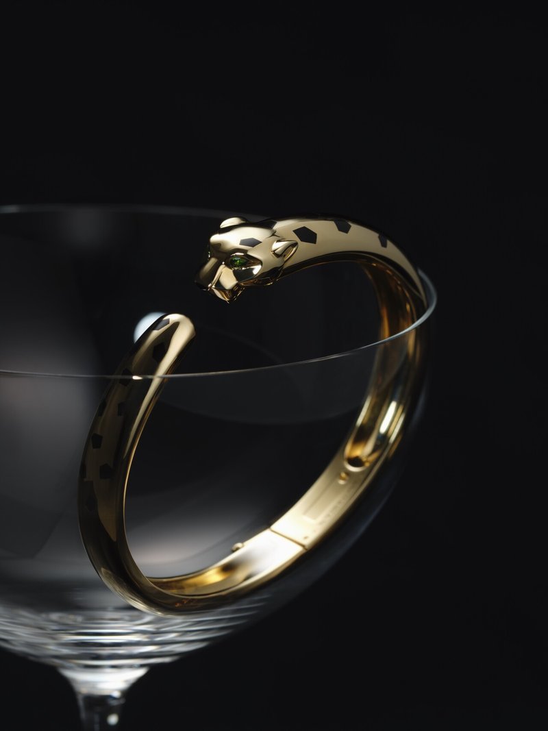 1914年に誕生し、メゾンを象徴するモチーフとして君臨する「パンテール」。1948年にはクリエイティブディレクターのジャンヌ・トゥーサンが躍動感溢れる姿へと昇華させた。現代はスリムで端正な表情に。時代とともに歩む永遠のアイコンだ。「パンテール ドゥ カルティエ ブレスレット」YG×ツァボライトガーネット×オニキス×ブラックラッカー ¥2,719,200/カルティエ(カルティエ カスタマー サービスセンター☎0120-301-757)
