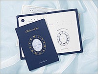 銀座本店のシンボルである時計をモチーフにした婚姻届。提出用と保管用をご用意しています。保管用は写真を貼ることも可能です。また、内側には星座がちりばめられた時計のイラストが描かれており、上にリングを置いて写真を撮影することもできます。おふたりがご夫婦になられる特別なアイテムが素敵な思い出となるようにご用意させていただいております。