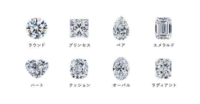 ハートの形をした「ハートシェイプ」、洋梨形の「ペアシェイプ」、四角くすっきりとした印象の「プリンセスカット」など、個性的な形が特徴です。