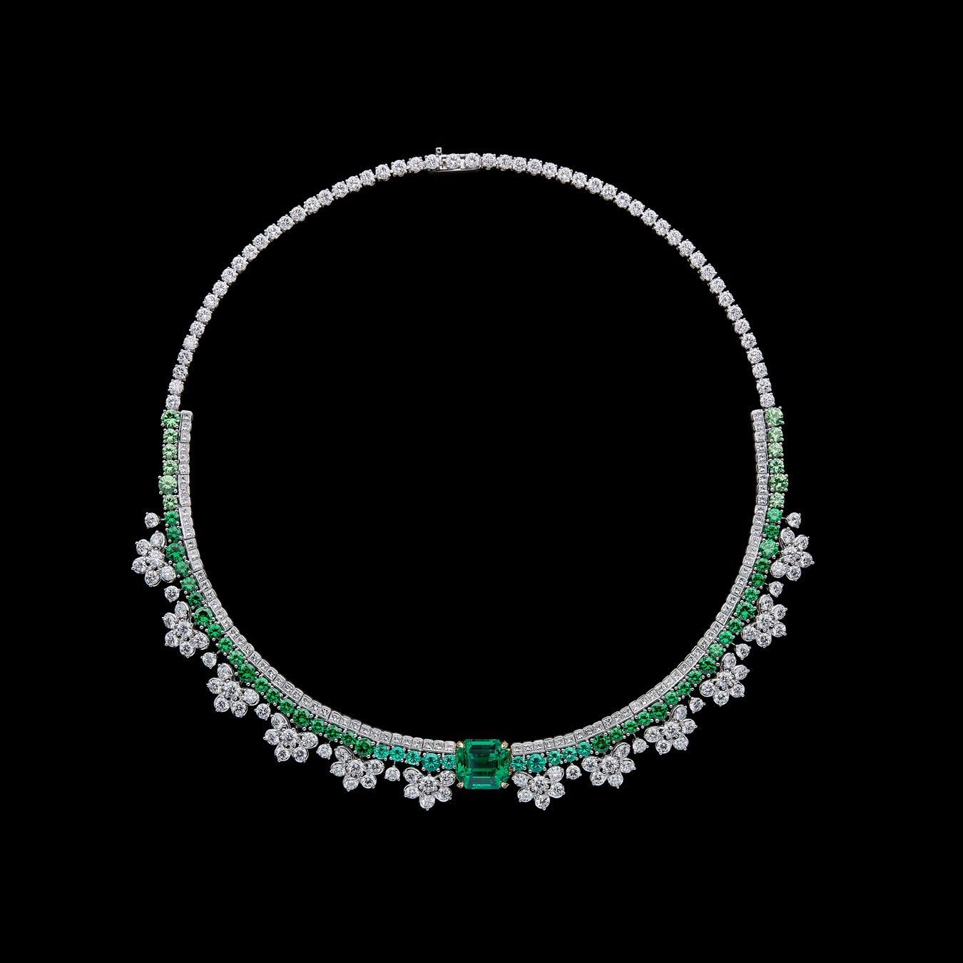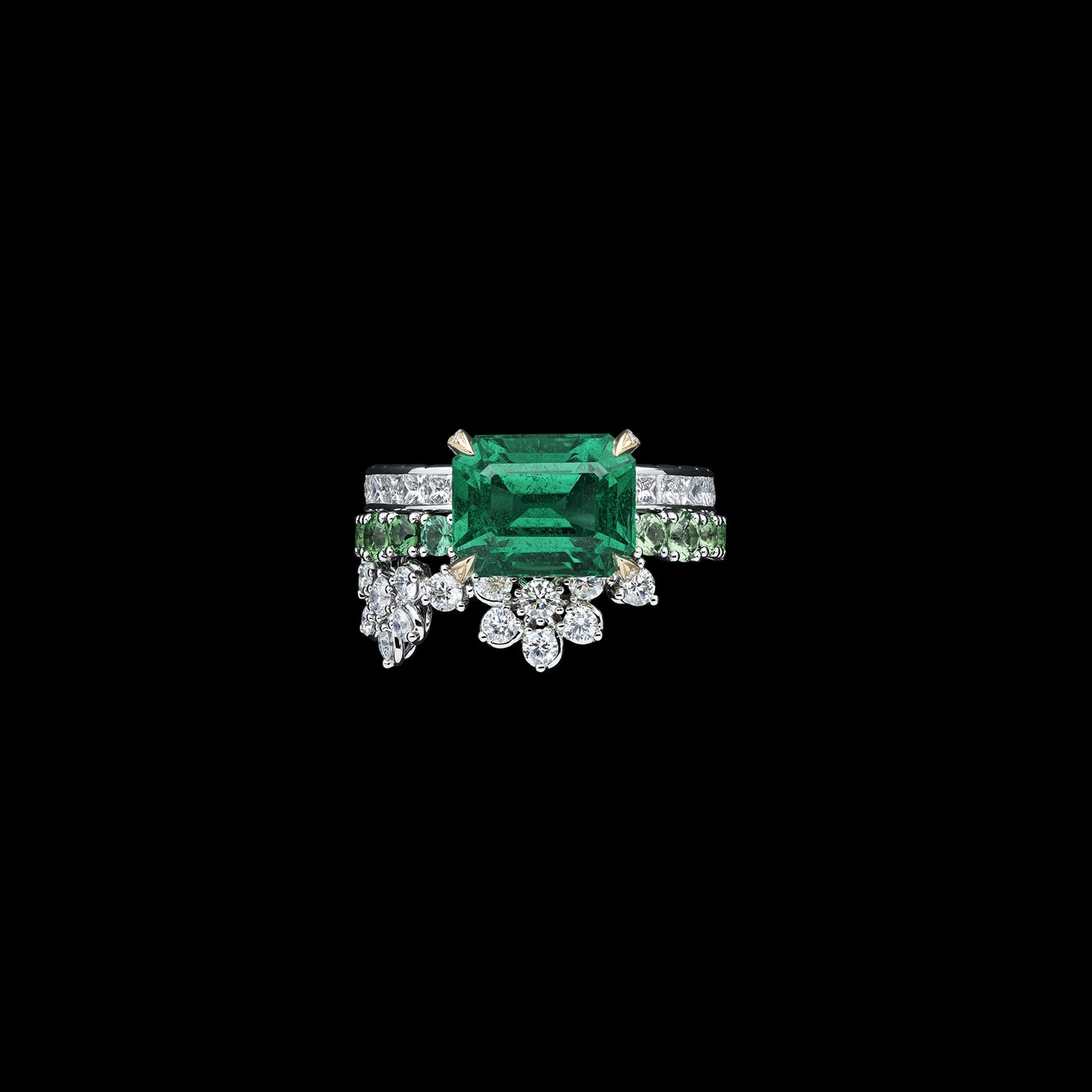 ネックレス、イヤリング、リング WGxYGxDIAxエメラルドxツァボライト